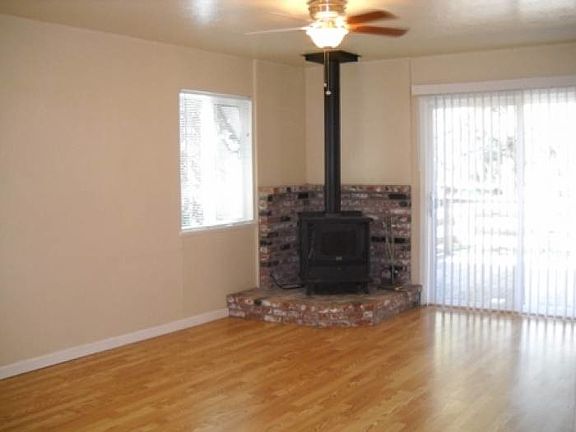 The home features accent painting, a cozy woodstove and hardwood laminate flooring in the living room, kitchen and hall. The home includes a rear deck, storage closet, refrigerator, washer, dryer and window coverings.One year lease; Application fee applies. Pet on approval; Pet fee applies. No smoking. If replying via internet leave contact name & phone number or contact HPM, Inc. customer service at (530)885-7252