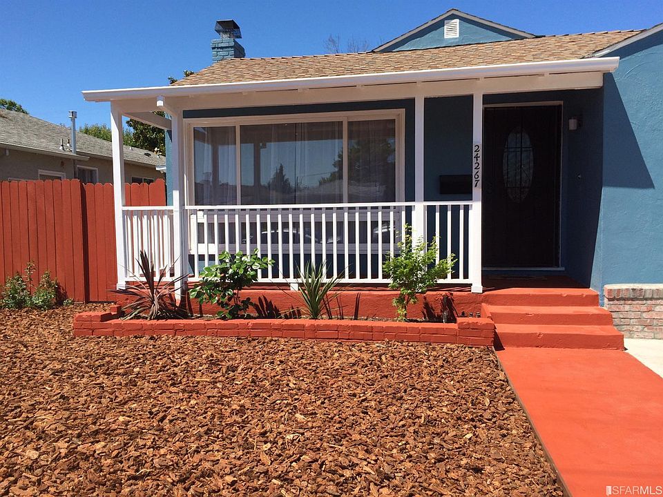 Remodeled 3 bedrooms 1 bath SFH with front porch in quiet and private cul de sac. Conveniently located near freeways, shopping and schools. New paint, new carpets, dual pane windows, ready to move in. Spacious living room with fireplace and hardwood flooring. Dining area off tiled kitchen/breakfast counter. Covered patio in side yard off dining area, great for outdoor dining and BBQ. Low maintenance yard. Must see to appreciate.