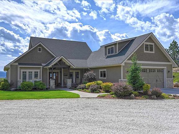 Get away from it all w/o giving up a thing! Custom home 21+ acres w/views. HW flrs w/radiant heat, AC, grt rm, gas FP, flr to ceil. windows, 3 sliders, form. dining, kit eat area & eat bar, gas rng & granite counters, mst. w/walk out, jet. tub & sep. shwr, walk-in clst, lg. Covered frnt/bk porches, spa, sprk sys, & gated dr, RV/boat parking. 36x34 shop w/pvt. porch, ktchn, 3/4 BA, loft, pellet stv, RV door. Can be subdivided. Near DT, skiing, 27 hole golf w/nearby airstrip, forests, lakes &