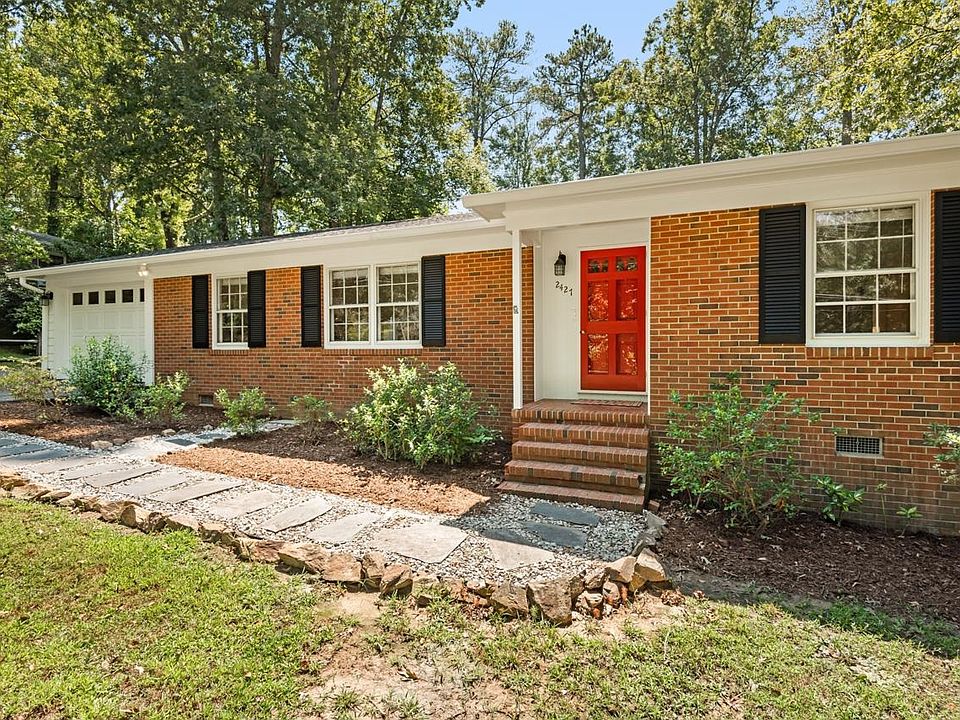 Alluring on Alpine! This charming brick ranch in the heart of South Durham has simple beauty written all over it. The thoughtful layout and open concept kitchen make for easy living and entertaining. Head out back where the expansive deck overlooks a massive and private backyard where your senses are engaged by birdsong and butterflies. The large front room with combined dining gives you many options to spread out. You'll find that the three large, light-filled bedrooms have freshly refinished hardwood floors and ample closet space. The second bathroom has been given an amazing refresh and looks brand new! All this and a stellar location to boot, where you are within a few minutes of downtown Durham, shopping, and dining. With tons of natural light and green space in spades, this delightful home invites you to relax and revel in knowing you have a beautiful piece of Durham where you can truly live your best life.