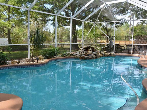 A rare, idyllic, & secluded setting in the heart of town surrounded by mature oak trees with 13 staghorn ferns on a .71-acre lot. This is truly an oasis. This custom-built home features an oversized, 3-car garage (920sf), plus circular drive, & abundant exterior parking. Pool area features waterfall, an oversized lanai, & separate hot tub which stays. Open great room floor plan with vaulted ceilings, large kitchen with double oven, Jennaire cooktop, Bar and Breakfast area. Two adult en-suite bedrooms perfect for sharing with extended family. Both have private access to patio/pool area. Master features huge walk-in closet. Tinted impact rated windows, roof & A/C replaced in 2013. Flex room is 4th bedroom. Close to Mall, shopping, restaurants, Melb airport, & only 15 minutes to Beach!