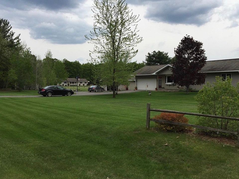 Welcome home! This spacious stick built ranch sits upon two manicured lots surrounded by a charming split rail fence and located in a beautiful well established neighborhood. The home features 3 bedrooms, master suite, bright living room, and a full finished lower level with a bar, office/bdr, family room and tons of storage. Exterior features include an attached 2 car garage, detached 24x32 garage, paved drive, covered front porch, private patio, sprinkler systems, and central air! New roof, freshly cleaned and painted!