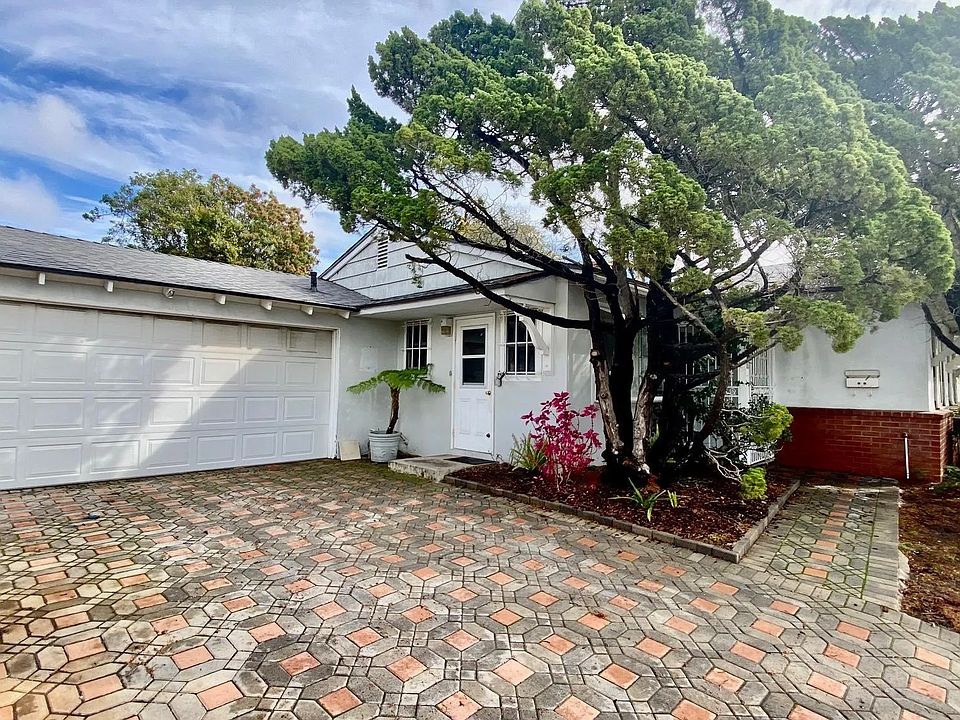 Great single level Bay Park home on a quiet street. View potential from 2nd story addition. Large 2 car garage and very private yard with lush landscaping. Cozy fireplace in living room. Great property to re-do. Tenants have vacated.