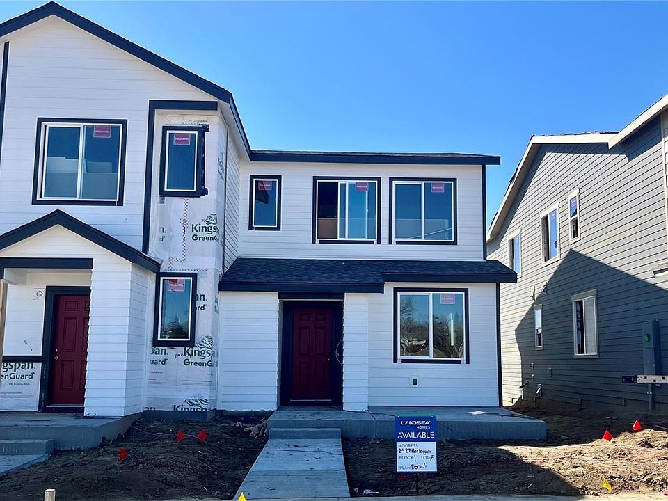 This home is estimated to be completed at the end of April 2024. The paired Denali home features a 1,159 square foot floorplan which includes a large front patio, 2-car garage, 2 bedrooms, and 2.5 bathrooms. As you walk through the red accent front door of this beautiful white exterior home, you’re greeted by a spacious entryway leading into the great room. Overlooking the great room is the L-shaped kitchen that offers a quaint space for a dining room table. The main floor also offers the convenience of a powder room just down the hall as you head to the 2-car garage. As you walk up to the second floor, you’ll find the laundry room perfectly centralized to the upstairs bedrooms. The large owner’s suite includes a private bathroom with dual sink vanity and a walk-in closet. The second bedroom is just down the hall with a private bathroom as well. Schedule an appointment to see your new home in Pintail Commons today!