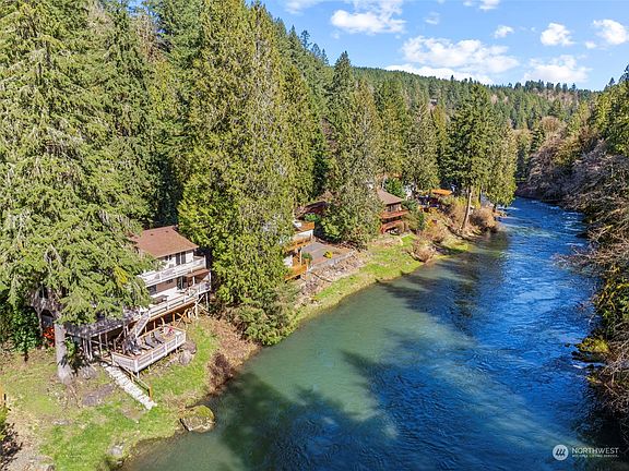 Have you always dreamed of living on the beautiful Kalama river?Well maintained home w/110 m/l ft of gorgeous river front awaits. Beauty all around & so much nature to enjoy. And you can fish off your deck! Enjoy 3 decks, two covered & 1 partially covered plus recently painted & updated. Interior offers updated kitchen with sleek black appliances, tile floors, granite counters, tile backsplash, eating area, formal dining, wood cabinets & slider to the the deck. Home has newer interior paint & downstairs is popular studio Airbnb OR convert to more bedrooms. Offers large main floor primary bedroom w/private bath, wood cabinets, WI shower & slider to your deck. Includes detached garage & attached garage & office/xtra room could be bedroom.