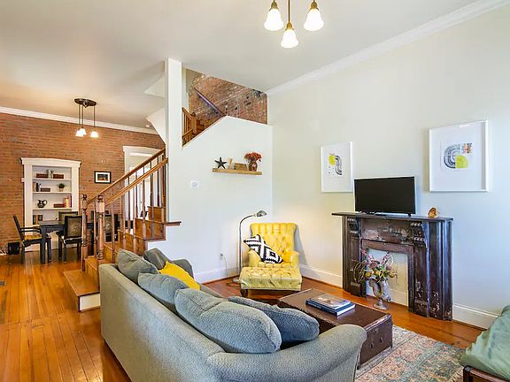 Welcome to this historic late-1800s Railroad Saloon turned expertly-renovated, 2-level Soulard townhome with exposed brick, open staircase, lots of sunlight and private courtyard entrance. This historic renovation with modern amenities boasts: Large kitchen with eat-in breakfast area and French patio doors opening to courtyard. Classic Soulard living/entertainment area with lots of exposed brick, antique wood floors, dramatic staircase and charm to spare. First level, large bedroom with closets, attached to a full bathroom. Second upstairs bedroom with view of the courtyard. Third, large upstairs bedroom with loads of sunlight and charming French doors, leading to a lounge area or office space. Second floor also has a second full bathroom with bathtub. Great location in the upscale center of Soulard. Located on the quieter end of the neighborhood; close enough to the shops and restaurants to walk, far enough away for peace and parking. Close walking distance to the neighborhood grocer. Tenant responsible for gas/electric. Owner pays trash/water. 1 year lease, one month's rent security deposit. No smoking or pets.