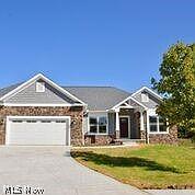 READY FOR MOVE-IN! Captivating newly constructed home featuring custom-made column covered front entry with architectural gable accent, gorgeous front door with high decorative glass for privacy, handsome stone and vinyl exterior. 1,904 square feet, single-floor living area 9' ceilings throughout. 3 Bedrooms with convenient switched ceiling lighting and lighted closets 2 full baths with upgraded oil-rubbed bronze fixtures. Spacious Great Room including beamed Cathedral Ceiling with ceiling fan light, gas fireplace, beautiful riverbed stonework fireplace surround. Dining Room or alternate Reading Room with wonderful natural light. Master Bedroom with vaulted ceiling and luxurious Master Bath including 2 separate vanities with beautiful granite vanity tops, large tiled shower and with riverbed stone accent and floor, luxurious soaking tub with custom tile surround, upgraded oil-rubbed bronze plumbing fixtures, Kitchen features granite countertops, high-end stainless steel range, rang