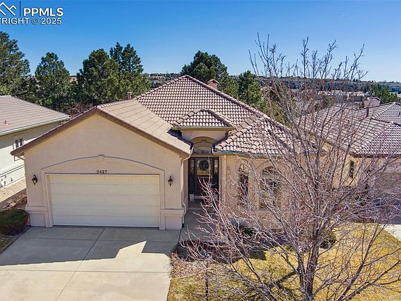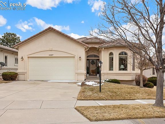 Colorado Living at its Finest! This rare patio home is located exclusively as one of only thirty-three homes in the highly sought-after Pine Creek area. A dream-like setting with the back of the home nestled against the gorgeous Pine Creek Golf Course, boasting Pikes Peak views. Three bedrooms plus a separate office, three baths, and a two-car garage while providing a flowing floor plan. Step inside to find beautiful hardwood floors that lead to a spacious, open-concept living and dining area with 10-foot ceilings and a wall of windows that brings an abundance of natural light. The gourmet kitchen boasts many cabinets, a large island and a walk-in pantry. The generously sized primary bedroom with views into the golf course also includes a 5-pc bath with a stand-alone shower, soaking tub, double vanity, and walk-in closet. To finish off the main level, you'll find the office with views of Pikes Peak filling the windows, a full bathroom, and a laundry room. The expansive basement is an entertainer's dream, featuring 9-foot ceilings, garden level, 2 more bedrooms, a full bathroom, and two storage rooms, one of these storage rooms can be finished as an additional bedroom. Enjoy the convenience of a 2-car garage that flows easily into the home. Outside, the patio makes for effortless outdoor enjoyment. This home is a rare find, combining luxury, comfort, and convenience in one perfect package. Come and see this amazing home that is turn-key, with ample storage, HOA-provided lawn care and snow removal, an ideal location, and close proximity to the Air Force Academy, the Shops at Briargate, I-25 Corridor, and much more!