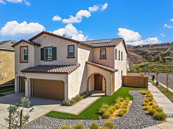 WELCOME TO TEMESCAL VALLEY. THIS STUNNING NEW BUILD HOME, HAS NEVER BEEN LIVED IN. LOCATED ON A QUIET CUL-DE-SAC IN THE EXQUISITE GUARD GATED COMMUNITY OF TERRAMOR. THIS YORKTOWN FLOORPLAN HOME DISPLAYS PRIDE OF OWNERSHIP UPON PULLING INTO YOUR 3 CAR GARAGE. FEATURED WITH OVER $130,000 IN UPGRADES, ENJOY FRESH PAINT, UPGRADED VINYL WOOD FLOORING, CUSTOM WOOD SHUTTERS ON ALL WINDOWS, NINE FOOT CEILING ON BOTH FLOORS, RECESSED LED LIGHTING AND PAID OFF SOLAR. UPON ENTERING THE HOME, THERE IS AN EXPANSIVE ENTERTAINING SPACE AT THE BACK OF THE HOME. THE SPACIOUS GOURMET KITCHEN HAS QUARTZ (STONE) COUNTERTOPS, SOFT CLOSE CABINETS AND DRAWERS, ALL STAINLESS-STEEL GE PROFILE APPLIANCES, GRAND ISLAND/BREAKFAST BAR, WALK-IN-PANTRY, LARGE DINNING AREA/GREAT ROOM ADJACENT TO THE KITCHEN. YOU WILL ALSO FIND A STUDY (POTENTIAL 5TH BEDROOM), POWER ROOM AND MUD ROOM. UPSTAIRS HAS A LARGE LOFT, THREE SPACIOUS BEDROOMS, FULL SIZE BATH WITH DUAL SINKS, A LARGE WALK-IN LAUNDRY ROOM WITH SINK AND CABINETS. THE LUXURIOUS OWNERS SUITE OFFERS AN IMMENSE WALK IN CLOSET, PRIVATE BATH WITH DUAL SINKS, LARGE SOAKING TUB AND WALK-IN SHOWER. THE FRONT AND BACKYARD HAVE BEEN LANDSCAPED WITH NEWLY INSTALLED ARTIFICIAL GRASS AND DROUGHT TOLERANT PLANTS. BACKYARD IS COMPLETE WITH CUSTOM PAVER PATIO, RAISED BLOCK FLOWERBEDS W/BULLNOSE BLOCK CAPS, VINYL FENCING. EASY ACCESS TO I15 INTERSTATE AND CLOSE TO MAJOR SHOPPING. COMMUNITY AMENITIES INCLUDE: RESORT STYLE SWIMMING POOL W/SUNDECK, HOT TUB, TODDLER POOL W/BEACH ENTRANCE, PARKS, PLAYGROUNDS, DOG PARKS, 5 MILES OF HIKING TRAILS, COMMUNITY GARDEN, BANQUET ROOM W/CATERING KITCHEN, BBQ AREA AND OUTDOOR CONVERSTATION AREAS THAT RESIDENTS CAN BOOK FOR PRIVATE PARTIES AND ENJOY COMMUNITY EVENTS. COME MAKE TEMESCAL VALLEY YOUR NEXT HOME!!!