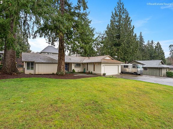 So much potential in this single level cosmetic fixer. The updated kitchen features stainless steel appliances, a gas range, Corian countertops & opens to a large dining nook. The spacious living room w/ gas fireplace & crown molding leads to a formal dining room. Primary suite with walk in shower. Relax and restore on the covered patio off the dining nook. Room for all your toys w/ RV parking + room for a boat. Close to old town West Linn & Willamette Park w/ boat ramp. Fridge & w/d included.