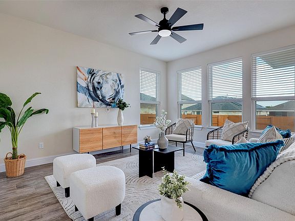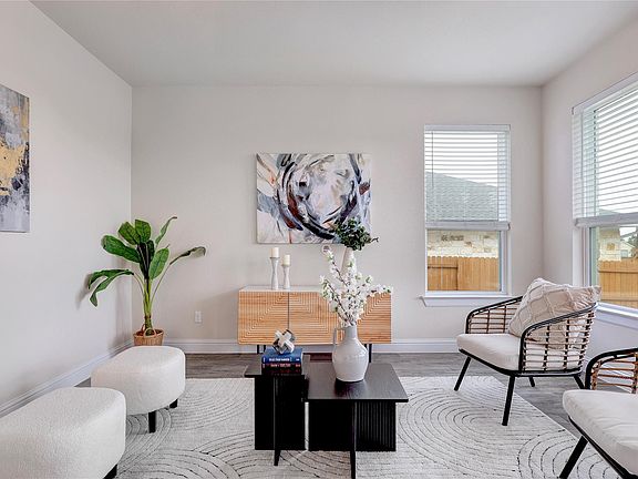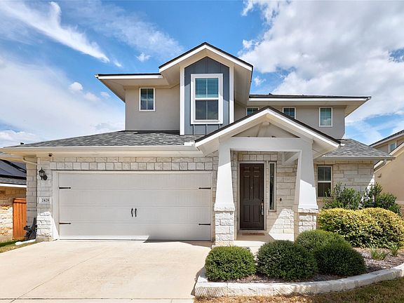 This 1,629 sq ft home in Deerbrooke offers an open-concept floor plan with a light-filled kitchen, dining, and living area designed for both comfort and entertaining. The freshly painted interior creates a bright, modern feel, and the home is move-in ready with a pre-inspection completed for buyer peace of mind. Energy-efficient solar panels, a 240V EV charging outlet, and full gutters provide long-term value and convenience. The neighborhood features a dog park and shaded walking trail just a short walk from the front door, along with a community pool, splash pad, and amenity center. Residents enjoy friendly, supportive neighbors and a peaceful sense of remoteness, even as the area continues to grow. Everyday essentials are just minutes away with H-E-B and the expanding group of shops and restaurants around Hero Way and downtown Leander. Downtown Liberty Hill is also nearby, and commuting is simplified with quick access to the recently extended 183A Toll, as well as the MetroRail Red Line for travel into downtown Austin. Leander continues to invest in strong infrastructure and water conservation, making this an area positioned for long-term growth. Combining modern upgrades, community amenities, and a convenient location, 2428 Brook Crest is a home that offers both comfort and connection.