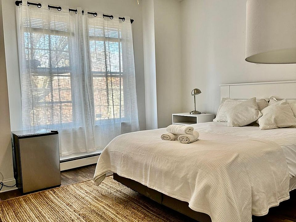 This Bronx Little Italy co-living space is ideal for St. Barnabas residents and students. The room measures over 300 feet and the home has over 2,100 square feet of living space including a backyard and laundry. This room is very bright and on the second floor of the home. There is a queen bed, two nightstands, a mini refrigerator, flat screen TV, desk as well as a walk-in closet. The home has a large common space with TV, couch and laundry. The common space opens to the backyard. All utilities and wifi are included. The home's common areas are professionally cleaned every two weeks. Flexible lease terms available from 1-24 months. Longer lease terms are cheaper.