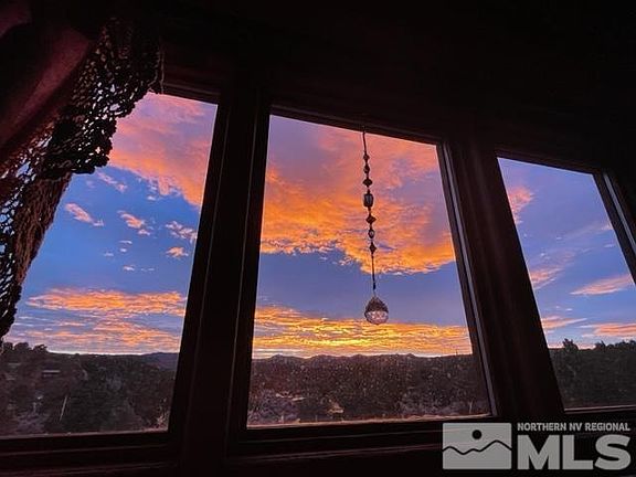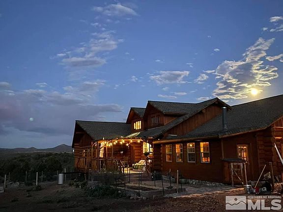 Live in a captivating vacation home year-round! This one-of-a-kind 3+ bedroom, 2.5 bath handmade log cabin homestead on 1.17 acres is a must see!! This boutique styled cabin was hand carved from 315 logs. Just 15-minute drive into Reno with beautiful night skies, solitude and unparalleled wildlife. In 45 minutes, you could be paddling Lake Tahoe or skiing Mt Rose. House is situated at the back of the flat lot with easy access driveway, leaving the front of the lot available for horses, a larger fenced yard,, or a barn! Enter through a beautiful stained-glass foyer that opens to hand crafted stairs up to a loft space with closet that could easily be converted to a 4th bedroom. Currently being used as crafting and playroom and a FIRE POLE that descends into the grand room! There is a stunning floor to ceiling river rock fireplace in the grand room for warm winter nights and holiday celebrations with a second dining/game table. Gorgeous window seating with an unobstructed view overlooking the valley, perfect for watching the horses and a morning sunrise with coffee. Large master suite with recently added custom closet and updated master bath with rock base shower, updated granite countertop and lighting. Artisan bunk room with wood stove currently being used as a home office. Guest suite/in-law quarters with private ½ bath and propane fireplace. Great flex space for visiting family! Recently remodeled kitchen with new high-end stainless-steel appliances, updated white and gold veined quartz countertops with sexy contrasting black cabinets with a custom wax finish. Cozy kitchen dining table that expands to seat 12 for family gatherings adjacent to a powerful wood stove. French doors to a private fenced yard that is adjacent to 20 acres of open space, large custom chicken coop/chalet and vegetable and herb gardens. Current owners have put love and money into upgrading this artisans retreat, enquire for full list of upgrades.