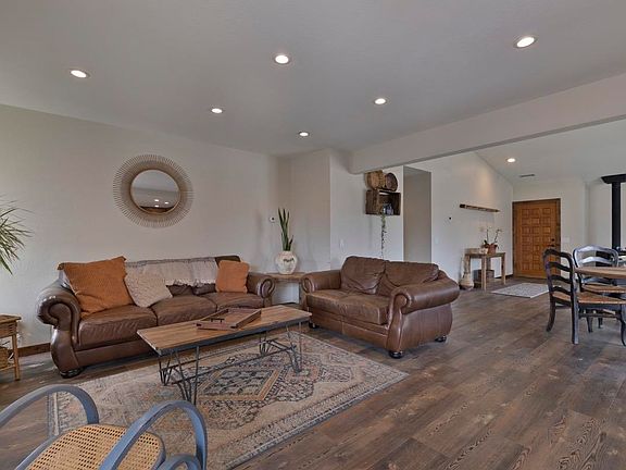 Beautifully renovated home in a lovely neighborhood in Bishop. This Meadowcreek 4-bedroom, 2-bathroom home on a corner lot offers a great floorplan, attached garage, and fenced backyard. The living space has been transformed into an open plan with the living room, dining room, den, and kitchen flow seamlessly together. Move-in ready home featuring completely remodeled kitchen with custom Alder cabinets, concrete countertops and a beautiful stainless farm sink, high-end LVT plank flooring throughout, custom Alder doors and trim, new closet doors. Stay warm in winter with a pellet stove plus a freestanding wood stove, and propane FAU and cool in summer with AC and ceiling fans.