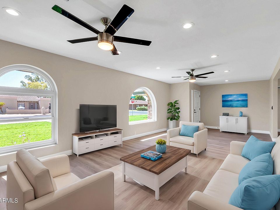 TOTAL REMODEL ON LARGE LOT WITH RV GATE/ACCESS & NO HOA! Spacious, Light/Bright, Single level w/split floor plan. Main bedroom is a retreat, featuring dual sinks, private bathroom, w/walk-in closet. Gorgeous Luxury Vinyl Plank Flooring throughout, all new windows, roof, interior/exterior paint. You will love the newly remodeled kitchen and large island, completely renovated bathrooms,quartz counters throughout. Oversized backyard includes a covered patio, w/ pool & lush grassy area for leisure and activities. Leased Solar. Great location, 4mins to the 202 frwy, 8mins to Hokoham Stadium, 12Mins to Sloan Park, Riverview, Cubs Stadium & Tempe Marketplace! Everything has been completed in this home, saving you time & money!