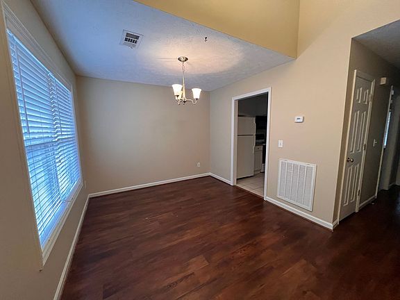 Beautiful town home in quiet neighborhood. Formal dining room, kitchen w/ breakfast bar, and living room all with wood flooring. Master bedroom with attached bath on main level. Two additional bedrooms with Jack & Jill Bath on second level. Laundry with appliances included, single car garage, and neighborhood pool. **NON STUDENT RENTAL**