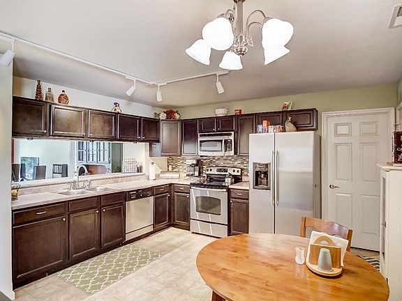 Come take a look at this ranch home that is nicely landscaped and well maintained and built in 2012. It has 3 bedrooms 2 full baths plus a den or family room to have options to fit your needs. Light and bright with painted woodwork , beautiful eat in kitchen with lots of cabinets and counterpace with a backsplash. The kitchen has a great see thru feature with a breakfast bar to have multiple bar stools. All stainless steel kitchen appliances remain with the home. Large living room with a sliding door to the back patio that over looks the private backyard. Split bedroom design with the master having a full bath with shower and a huge walk in closet. Bedrooms 2 and 3 also have walk in closets and they share a hall full bath. Separate utility room for washer and dryer that leads out to the 2 car garage with lots of shelving for storage.