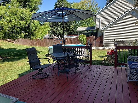 You are going to love this extra clean, freshly painted spacious 4BR/2.5 BA Two story home with full basement! 9 ft ceilings throughout the main floor. Open kitchen to the FAM RM with w/burning fireplace. Bay window off the dining area with french doors to large deck overlooking fenced back yard. Kitchen features, granite countertops, breakfast bar island and a double door pantry. Upstairs you'll find a spacious Master Suite w/vaulted ceiling, XL walk in closet and large master bath with double vanity, jetted tub and separate shower. Three additional bedrooms one with walk in closet. Updates include new neutral carpet, roof 2012, Energy efficient two cycle HVAC 2014, Water Heater 2008. 2nd story laundry room. Yearly assoc dues $210 includes pool, tennis courts and clubhouse rental at reduced price. Don't delay, SEE THIS ONE TODAY!!