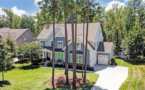 Curb appeal galore for this stunning three-story home! A lush yard w/ manicured landscaping & rocking chair front porch welcomes you home to this craftsman style stunner! Enter to a 2-story foyer. Bright office through French doors. Spacious formal living & dining w/ tray ceilings. Eat-in kitchen boasts 5 burner gas cooktop, G-Energy Star Dishwasher, new double oven, GE Profile SS appliances, expansive island, plus gorgeous granite & backsplash. Great room pre-wired for surround sound & large gas fireplace. Laundry/mud room on main. Upstairs, massive owner's suite w/ sitting area & bath feat. garden tub. 3 additional beds, 2 attached w/ Jack-and-Jill. On 3rd, bed w/ bath, media room, & space for storage!Out back, a paver patio w/ fireplace & built-in grill w/ countertop space & bar surrounded by mature trees. Enough room for two large outdoor dining sets! 3 car, side load garage & sprinkler system round out this beyond perfect, move in ready home!