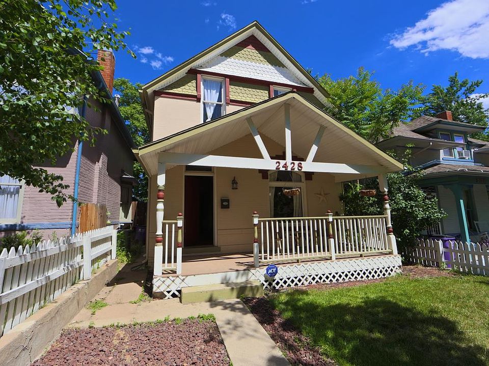 3 Bedroom, GREAT LOCATION - WALKING DISTANCE TO MANY RESTAURANTS AND 2 MINUTES TO I-25. Free Standing house with fully fenced yard & dog door SPECS *2 car garage with electric and storage *3 bedrooms on top floor (3rd bedroom does not have a closet) master bedroom has 2 closets *Bonus office main floor *1.5 bathrooms *Updates - new paint, carpet *Stainless Steel appliances and granite counters in kitchen *Washer / dryer included *Large deck with garden and private yard *Covered front porch *Dog door to enclosed back yard *AC *Traditional victorian with many original features including Amazing stair case, molding and built ins. All the updates you'd want plus all the charm of a victorian house DETAILS *Available: June 1 2020 *Term: 1 year *Rent: $2,900 *Deposit: $2,900 *Pets OK: $25/month/pet - there is a dog door to the fully enclosed back yard *Owner pays trash and sewer *Tenant responsible for gas/electric/water/cable/internet Owner pays trash and sewer, Tenant responsible for gas/electric/water/cable/internet Pets OK: $25/month/pet - there is a dog door to the fully enclosed back yard