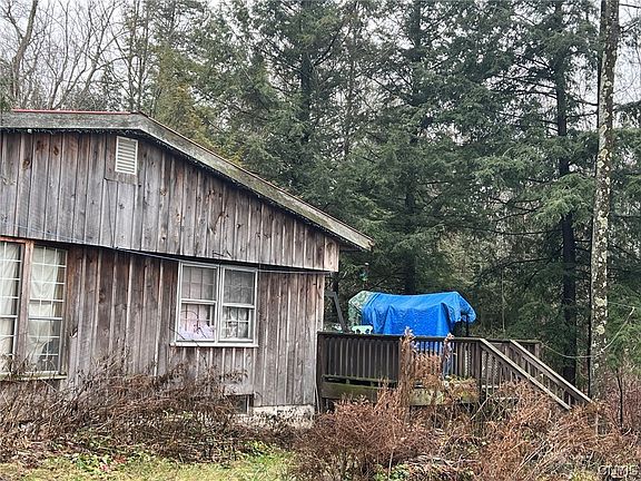 Looking for a quaint country living fixer upper? This home has so much potential. 2-3 bedroom, 1 bath manufactured home on almost 11 acres with a pond, pear trees, amazing blueberries and concord grapes. Wild blackberry and raspberry bushes galore. Lots of hardwoods and pine trees and great for hunting, and all this located in Marcellus School District. The home sits off the road nestled in the woods, some open land and great views. Side deck and don't forget coming down the long driveway you have to cross over a creek, you can hear the water running so relaxing. Make your appt. to see this home today! Home is being sold AS IS.