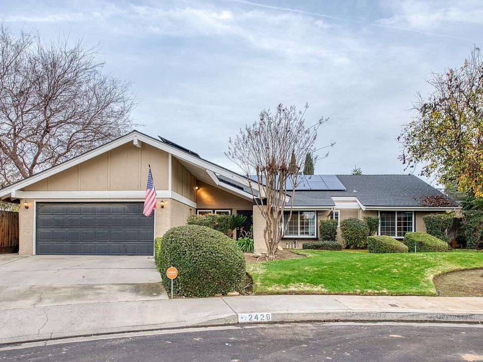 This beautiful Clovis home is located on an oversized 11.270 sq.ft. lot with Potential RV and Owned Solar. It is tied to award-winning Clovis Schools, located near local shopping centers and grocery stores, and just 10 minutes from Old Town Clovis. The home features two living areas, three bedrooms, two bathrooms and has newer windows throughout. Custom hardwood flooring in the family room, kitchen and hallway. The updated kitchen features stainless steel appliances, gas range, granite counters, newer double-ovens, newer microwave and a refrigerator. The gorgeous backyard features a covered patio, an extended concrete area perfect for a firepit or spa, mature landscaping that includes fruit trees, and a newer custom-built pool (2019) with waterfall and fiber optic lighting that you can control with your phone. Vivant smart thermostat, alarm, and video doorbell is also included. Newer AC unit, newer ductwork and extra insulation in attic. Schedule your showing today.
