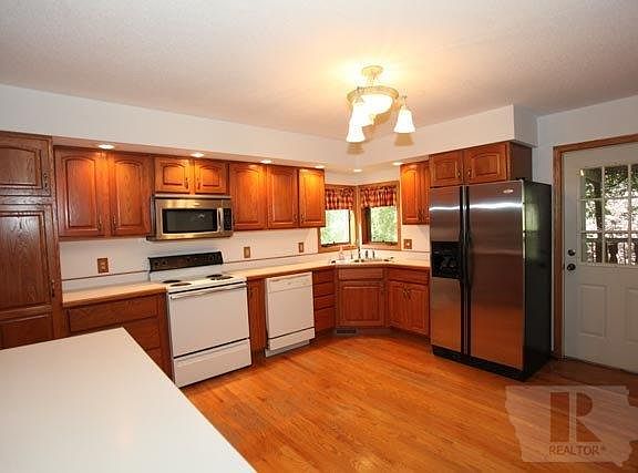 Country living so close to town, this 3 bedroom, 2 bath home offers a large kitchen, separate dining, main floor laundry, huge master suite, enclosed three season porch and living room complete with fireplace. Hardwood floors in kitchen and dining. Walk out lower level offers an additional bathroom, space for additional bedrooms, workshop, a recreation room (with bar area) and lots of storage space. Deck, patio, great landscaping, an extra lot and two sheds. Enjoy the beautiful country setting of Lakewood subdivision in this spacious cedar sided home.