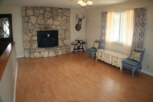 All brick ranch home on 5 acres less than a half mile off the blacktop. Home has had many major improvements such as; heating & air, roof, hot water heater, and flooring replaced with wood laminate and vinyl on both levels. Kitchen, living room and dining room are all open. 2 stone fireplaces, the one in the living room has an insert that really helps to heat the home. Extras include - attic fan, most windows in basement replaced, all kitchen appliances stay, main floor laundry, mud room, and nice patio that receives the evening shade. Shop is 39x32, with double and single doors, 220 electric, concrete floors and work benches. Also includes a lean to. Land has 2 acres in trees and a small dry creek with some wildlife. There is fencing on 3 sides of the property. Home is total electric, average bill is $130.00/month.