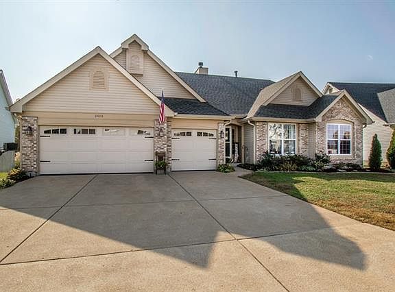 Beautiful 5 Bedroom 2793 sq ft 3 car Atrium Ranch in Seckman School Dist. Come see the wide open spaces boasting almost 2800 sq ft of finished living area.Wide plank wood floors through most of main level. Vaulted great rm with Stone gas fireplace custom mantle. Separate Dining rm just off Nicely up dated kitchen with Stainless appliances. Spacious vaulted Master bed rm with Walk in closet,lovely M bath offers double bowl vanity sep shower and jet tub. Nice size 2nd,3rd & 4th Bed room on main floor. 19x16 deck just off Gr. room/kitchen. 16x19 Lower level familyrm that walks out to the patio, 18x27 unfinished rec room is a great place for all the kids to play. 5 th bed rm with full bath is great for a visiting guest of teenager. The un finished utility room offers plenty of storage area. The property backs to woods with and a short walk to the Pool and club house for summer fun. Recently completed up dates 2017 Roof, insulated Garage dr, Hardie Board fascia & Trim, see list for more