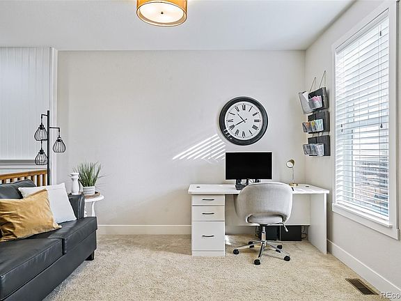Poised on an oversized lot, this white modern farmhouse offers serene privacy in a coveted locale. Overlooking open space from both the front and back of the residence, an open, ranch-style layout unfolds w/ stylish details throughout. As you enter the home, you have a versatile area that can be utilized as a home office, formal dining or sitting room. To the left of the home’s entry are spacious second and third bedrooms with large closets that are connected by a convenient jack-and-jill bathroom. With streams of natural light, the home’s kitchen and great room are ample room for entertaining and gathering. A vast center island w/ seating grounds a chef’s kitchen complete w/ stainless steel appliances, quartz countertops, generous cabinetry and a large pantry. Retreat to a sizable primary suite with a spa-like bath and a walk-in shower and a soaking tub, as well as a walk-in closet with custom features. Also on the main floor is a powder bathroom, and a laundry/mudroom with utility sink. The two-car tandem garage has plenty of additional storage space. Endless possibilities for personalization await in the unfinished portion of the basement as the fourth bedroom and bathroom are positioned conveniently at the back of the home. Revel in outdoor relaxation on a sprawling back deck in an expansive backyard or enjoy morning coffee on a covered front porch. Located in the coveted Cherry Creek School District, this home is conveniently located minutes away from E-470, restaurants and shopping, and the Aurora Reservoir. This one won’t last long!