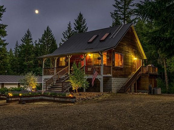 ''The difference is in the details!'' and this place has them all! 7.66 gorgeous ''Sunny Valley'' acres just waiting for you! This completely remodeled 2 bed, 1 bath, 1308 sq. ft. off-grid property has limitless possibilities; Multi Gen Family? Retreat Center? VRBO - AirBnB? Grow? Hobby Farm? There are acres of usable land, great water, good sun! This completely self-sustaining property is all Solar with Generator Backup, is heated by Certified Wood Stove (additional propane wall heaters in bed and bath), features a 35 GPM Well, Large attached 2 Car Garage (possible living space?) Separate 3 car garage with stylish kitchen and large rec room (ANOTHER living space?) PLUS 3 Cabins on property ready for your finishing touches! Seasonal Baker Creek runs through with 1931 water rights! Deer fence enclosed Custom Greenhouse! Fenced Livestock area! Barn! Chicken Coop! Bridge! And so much more! This property WILL NOT LAST!! Appointment only!