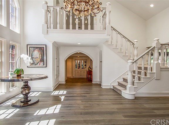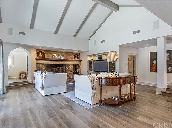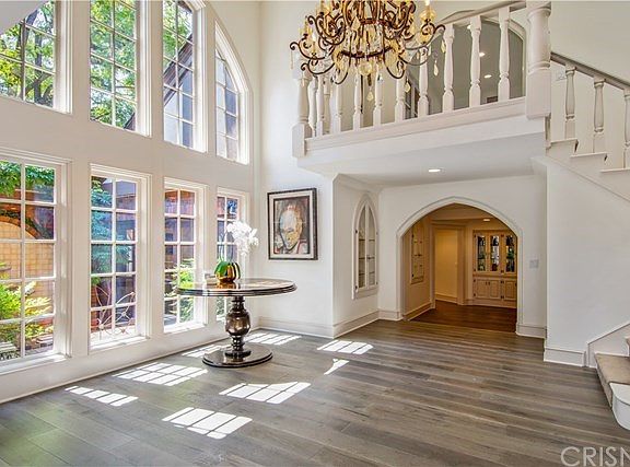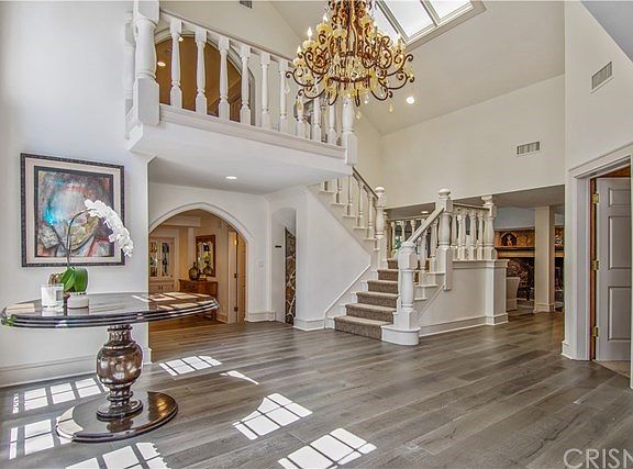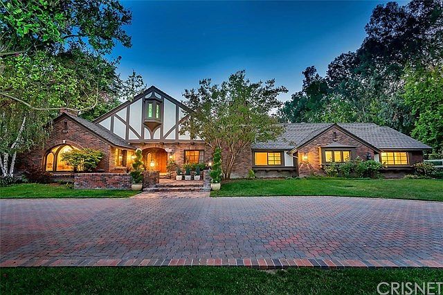 Immaculate and beautifully upgraded Country English estate on a prime cul-de-sac. Enter into a light filled foyer, with dramatic volume ceilings and arched doorways. Amenities include a dual center island chef's kitchen with stainless steel appliances, stone counters, and sunny breakfast room, opening to the large family room with stone fireplace and adjoining entertaining area with wet bar. The spacious living room with beam ceiling and stone fireplace opens to an interior garden patio and is flooded with natural light. The master suite includes a newer, all stone bath, sauna, and private retreat. There is also a large formal dining room, butler's pantry, true wine cellar, custom finished office, big bonus room (6th bedroom & bath) that can be accessed by a separate entrance, plus newer wood & stone floors, stained glass windows, and more. The lush grounds include a circular drive, mature oak trees, a beach entry pool with spa, poolside patio, barbecue center with stone countertop, loads of off street parking, and wonderful privacy. This home is model sharp throughout and in an excellent Hidden Hills location.