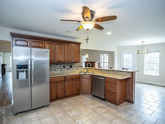 Custom built! Open floor plan. Oversized rooms & garage. Lots of granite in kitchen & master bath. Metal shed, some metal privacy fencing, separate more private area in the back that’s fenced (great for chickens). Stocked pond w/wheelchair access on 3.4 acres. Some handicapped features include: