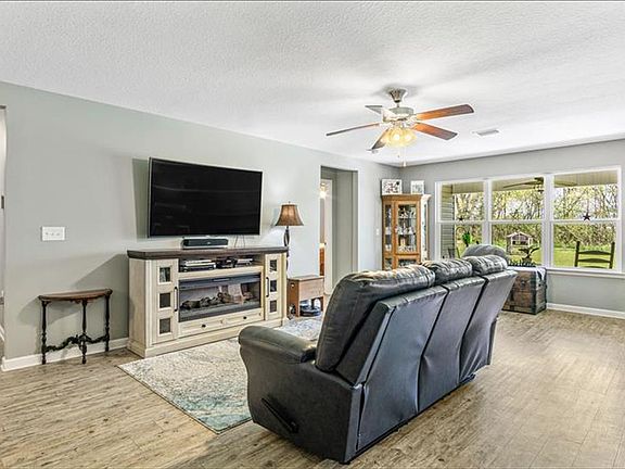 Beautiful 4/2 home in Harvest Meadows, with lots of upgrades! Open spacious floorplan with tons of natural light, and vinyl flooring throughout. Kitchen has huge island for extra prep space, beautiful granite countertops, stainless appliances, and upgraded lighting. Large primary bedroom suite has walk in closet, double vanity, garden tub, and separate shower. The additional bedrooms share the hall bath. Do not miss the covered patio overlooking the huge partially fenced backyard with wooded views. Convenient to schools, and short drive to I-10. NO HOA!