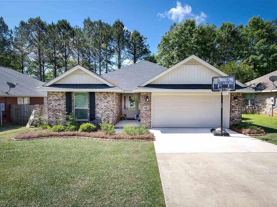 Delightful home in a charming central Baldwin neighborhood! This home has been well cared for and greets you with a bright open kitchen/living/dining area as you enter. Attractive wood laminate flooring through the foyer and kitchen with stainless appliances. Lovely master bedroom and bathroom setup with separate shower and garden tub. The backyard is a peaceful retreat and is privacy fenced. The neighborhood is along 40 acre Lake Raynagua and also has three ponds, all stocked with bass, bream and catfish. Additionally, there is lake access with a boat ramp, park area, gazebos and picnic areas. The central location makes it convenient to Alabama's beaches, desirable Eastern Shore and a short commute to interstate 10.