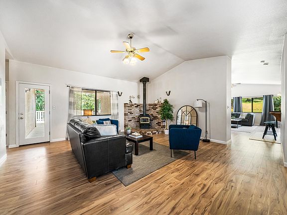2,500 SQ/FT on 6.33 Acres and under $500k!! Thats only $200/FT in this unprecedented real estate market. Bring your RV, Boats, & horses this property has room for it all! Brand new luxury waterproof plank flooring installed throughout!! 2 master bedrooms both featuring walk-in closets and on-suite bathrooms plus two more bedrooms! Huge partially covered newly painted deck and finished 500 SQ/Ft garage. Brand new roof put on in 2019. New AC and leach field installed in 2012. Wood burning stand alone stove heats the entire house in the winter. Brand new well pump and over 8,000 gallons of water storage!!