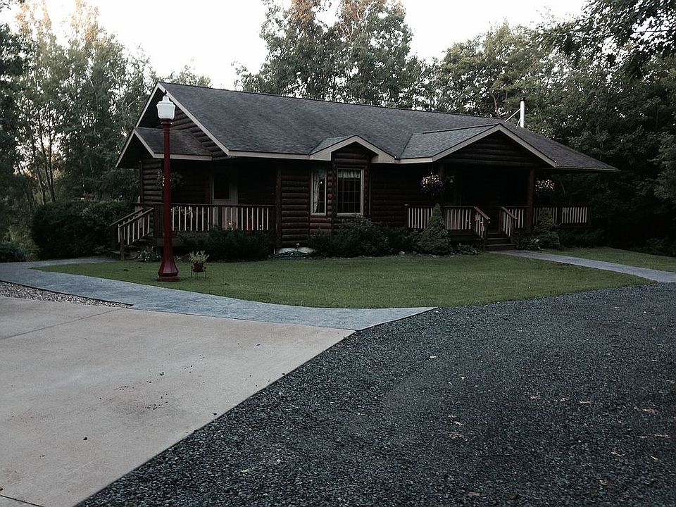 Log Sided well kept home, deck off master bedroom with hot tub capabilities, very private setting yet close to town