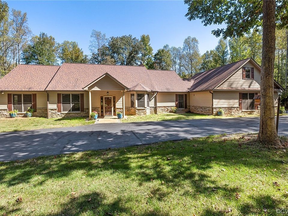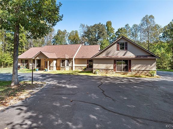 Everything you need to ‘Get Away’ without leaving Home...Gorgeous details are incorporated throughout this custom-built, zero-entry, Ranch tucked away on private, wooded 6.6 acres and yet easily accessible to highway and minutes to Short Pump. Offers wonderful options for both Outdoor and Indoor enjoyment. STUNNING heated fiberglass salt water pool, hot tub and surrounding patio overlook the wooded backyard and, along with separate fenced area with play-set, create endless outdoor living and entertaining options. Hardwood floors, 9ft ceilings and rich wood trim provide an elevated rustic appeal throughout the interior. Centrally located vaulted Living Room with glass doors to the pool and a Dramatic 2-sided stacked stone fireplace is a welcoming gathering space year-round! Its raised hearth is constructed from a solid stone slab and the mantels were sourced from a 1700’s Connecticut textile mill. One-of-a-kind features! Open floor-plan includes an expansive Kitchen with large center-island, granite, pull-out storage, pantry closet, walk-in bay window Eat-in area and more. Generous Dining Room has custom cabinetry and a separate Family Room has a built-in wet-bar and glass doors to patio. Designed with privacy in mind, Primary Suite includes its own Den/Office with shared stone fireplace, EnSuite Bath with tub and shower, walk-in closet and direct outdoor access. A separate wing includes a second Office (or Bedroom) in addition to 2 more Bedrooms and large storage room. The 3 car garage provides ample workshop space, attic storage and a specially constructed concrete FEMA room (tornado shelter). Other features include: extra-wide doorways, whole house generator, detached shed, high-speed internet access, attached pool-house with half-bath and pool storage, New Well Pump 2024, New HVAC condenser coil 2024 and more!