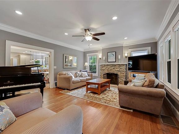 Beautiful updated home on one of the best streets in the HEART OF ARDMORE. The rocking chair front porch welcomes you home as you enter the large great room with fireplace and warm wood floors. Great sunlight throughout with attractive updated windows. The huge, open kitchen has granite tops and stainless appliances with wood floors, mudroom, laundry and half bath are nearby. The private, main level primary suite has a bath with double vanity, walk-in tile shower with rain head and hand held shower and walk-in closet. There are three additional main level bedrooms, all of which could make a great study and a bath with tub and tile surround and tile floor. The upstairs has a bonus room and another bedroom and bath with walk-in tile shower. The cellar makes for great storage, as well as the walk-in attic upstairs.