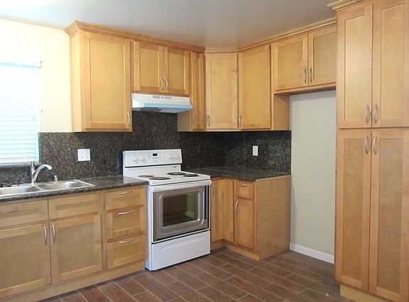 Beautifully remodeled single family home with 4 bedrooms, 2 bathrooms, and a 2 car garage. The home has a brand new kitchen, new dual pane windows, new tile flooring, fresh paint, and new window coverings. The kitchen has been drastically remodeled with new cabinets, granite counters and backsplash, stainless steel sink, and includes a electric stove/oven, new fridge, and new dishwasher. The living room has a vaulted ceiling and fireplace. The master bedroom is highlighted by a large walk in closet. The bathrooms have been updated with new vanities, countertops, sink, and tile flooring. Gardener is included in the rent. One year lease. No pets except for service animals. Cal BRE# 01512831 Owner pays gardener