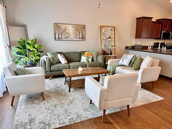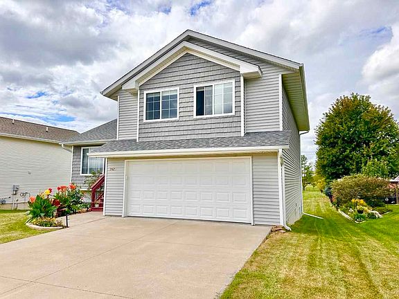 Welcome to this stunning 3-bedroom, 3-bathroom home offering an open floor plan with soaring vaulted ceilings creating a light and airy atmosphere. Enjoy the convenience of an upgraded appliance package in the kitchen, perfect for all your culinary needs. This smart home has fiber internet, a smart thermostat, and automatic blinds on the upper level for ultimate comfort and efficiency. The spacious primary suite features vaulted ceilings, a walk-in closet, and plenty of natural light. Step outside to a large, flat backyard with a walkout leading to a beautiful multi-level deck, ideal for entertaining or enjoying a peaceful afternoon. The unfinished lower level offers plenty of potential, already stubbed for an additional bedroom and bathroom, with its own walkout to a patio. With thoughtful modern upgrades and room for growth!