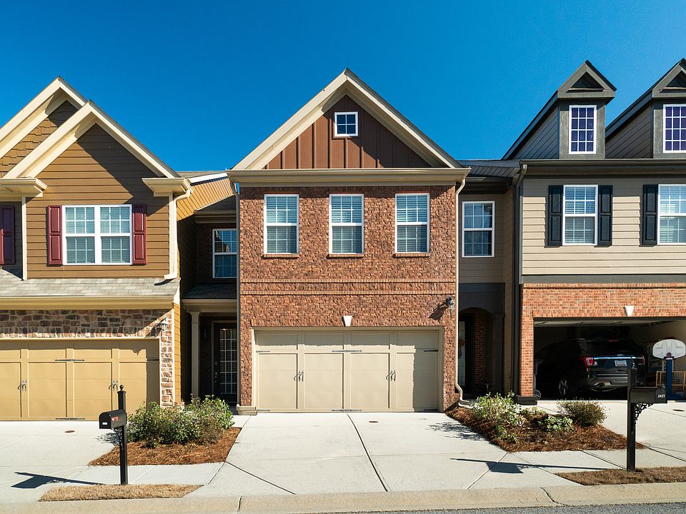 Beautiful townhome in conveniently located gated, swim/tennis community with fitness and playground. Just off 85. Walk to shop, restaurants, and Xpress to downtown. Open living with gas fireplace, inviting hardwood foyer, columns define dining room, granite kitchen with big island. Large master, two big bedrooms, and separate office/nursery/4th bedroom. Master bath w/ dbl vanity, separate garden tub and shower. 2 walk-in and 2 large closets upstairs. Built in phase 2 with best windows, materials and 2 HVACs. HOA covers "studs-out", water/sewer, trash, and landscaping.