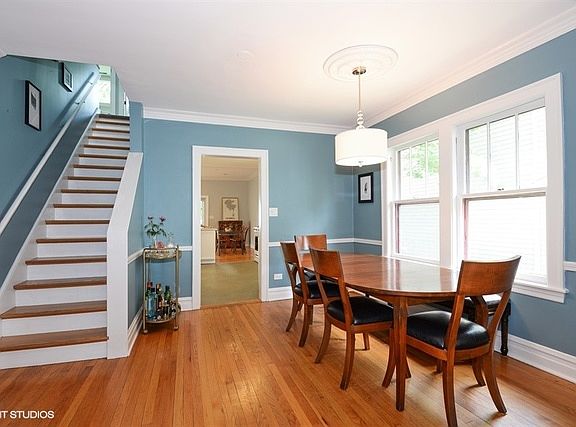 Sweet expanded Bungalow in great north Evanston locale. 5 bedrooms plus office OR 6 bedrooms, 2 full baths with over 2800 sq ft (not including the basement) and an updated open kitchen & family room floor plan. This home provides plenty of living space with generous sized bedrooms and closets. Updated eat-in kitchen with large eat-in space and newer appliances opens to the family room overlooking the rear deck & huge backyard. 5th bedrm on 1st floor with full bath plus 1st flr office/den, formal living rm and separate dining room too. 2nd floor w/4 spacious bedrooms (including a cool master with desk area and skylights) with good closets and big windows and skylights. Big hall bath too. Great, big basement for laundry and tons of storage. Fireplace, wood molding, recessed lighting and hardwood floors. New 2 car garage. Lovely yard. Walk to everything!