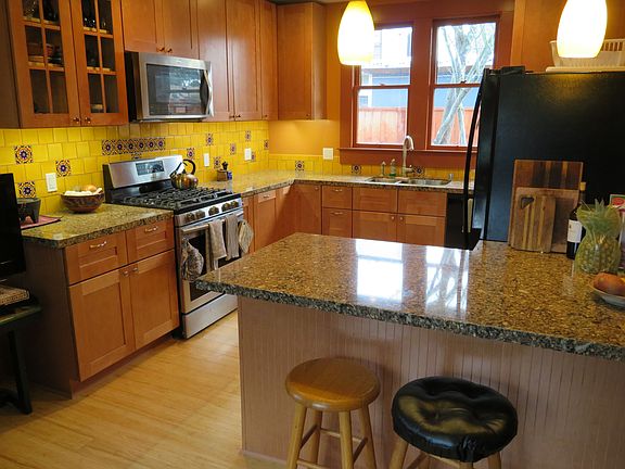 This delightful one story cottage newly remodeled in central Berkeley is your future home. The house sits in back of another small house with a lovely yard including a gas grill in between along with a small garden behind. Step inside onto a enclosed porch/sitting area, and you?re greeted with new wood floors in all but one room which has the original wood flooring. The new kitchen is particularly striking, with reddish/light brown walls and yellow talavera tiles matching flawless quartz countertops. All appliances are new including fridge, stove, and dishwasher. The kitchen and one bedroom are connected by a bathroom, which has a claw foot tub. There is also a bedroom/office which connects the living room to the other bedroom. Need storage space? There?s a small attic too! Also featuring a shared laundry room at the back of the front house on the property. There is side driveway for parking.
