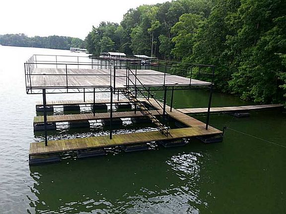 Gorgeous lot with hardwoods has double slip dock (32 x 32) with party deck on deep water in convenient, private area of lake facing Sardis Creek Park. This gated, private lake community of 6 buildable lots is close to Gainesville shopping and Gainesville Marina. Buy and build later or have builder/owner build to suit. No lake view but drought proof water and location on lake. Perfect for moderately priced, NEW lake home.