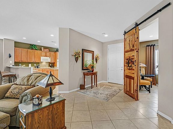 Everything you want is right here in this beautiful home. Bright and immaculate, this 2096 sq ft Lincoln model offers two bedrooms and two  baths. Totally fenced in front courtyard welcomes you to an outdoor living space with peek a boo mountain and city views. Enter through the customed front door into a large great room. Open floor plan features a large kitchen with stainless steel appliances, corona counter tops, an island, and a doubled door pantry.   In the kitchen is a spacious dining area flooded with natural light. Den is off to the left of the main entrance. The den features a custom barn door for decor and privacy.  Large primary bedroom has a spacious sitting area, and a door to the quiet backyard. Porcelain tile floor throughout the traffic area, and like new carpet in bedrooms.  Relax in the backyard paradise which features privacy  with fenced yard and patio cover!  This is a beautiful home that you do not want to miss!