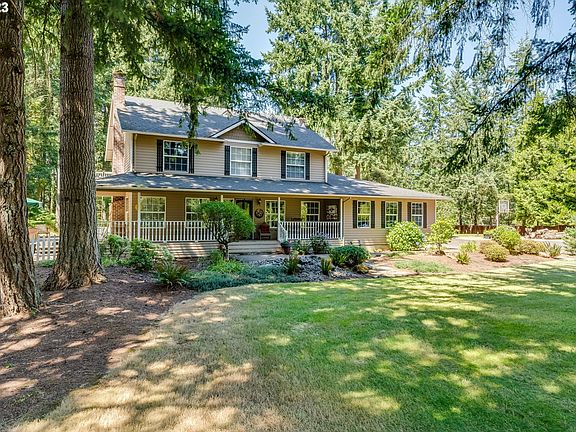 Traditional style 4 bedroom farmhouse nestled in the woods of Oregon City! The traditional style residence (all bedrooms upstairs) greets you with a welcoming front porch, true hardwood oak floors throughout most of the main level/kitchen, wood burning stove, formal dining area and breakfast nook/eating area. Master suite with spacious updated bathroom, and don't miss that private deck off the master! Office on main level in front of home too. Heated shop with 4 bays, garden shed with more covered work area, and an ADU ready space with utilities/RV space parking pad. Property is 5 acres with plenty of space to enjoy the natural setting or expand. Quick access to HWY 213. Schedule your showing today!
