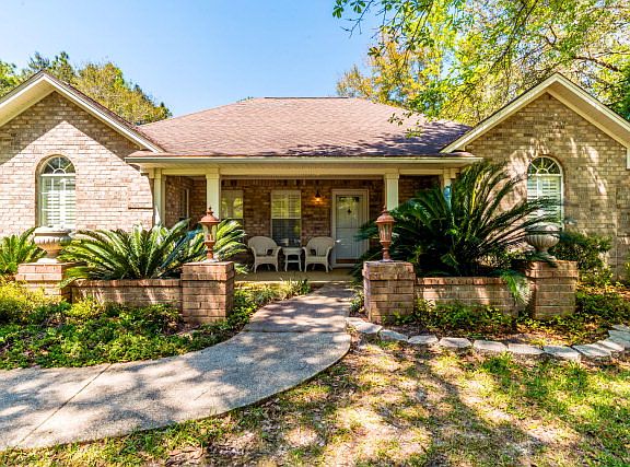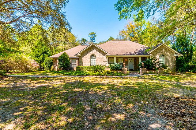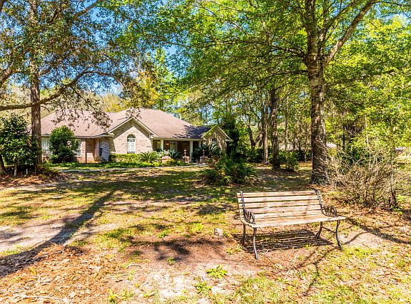 Fantastic home with a very special lot in Bay Forest Estates. Granite in the kitchen with stainless appliances, wood floors throughout. Extra large garage with golf cart entrance. Very private setting with a back yard forest. Deer pass through the yard frequently. Split floor plan, separate dining room, large living room with a nice fireplace. Attic is floored. Outside has a great sitting and grilling area. Subdivision has a boat dock and boat launch, and a clubhouse.