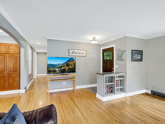 new siding and brickwork (2008), roof (2010) and windows (2000/2010). Extended concrete driveway, which will park many cars + sidewalk (2008). Living room is larger than normal and laundry room/mud room combo added (1996) with 3 bedrooms and 1 & 3/4 baths on main level too. Gorgeous original hardwood floors. Kitchen has newer stainless-steel appliances and granite countertops (2015). New lighting and open concept coved archway. Both bathrooms on main level recently remodeled (2023). Don’t miss the huge garage and the storage over the garage or the equity building potential in the basement (add more bedrooms, FSF or make it a 3/4 bath vs. 1/2 bath.) You’ll see storage possibilities, 2nd living area and whatever you need. Steel beam construction! Mounds View Schools! Nicely situated between Vermont Park, Arden Hills Beach and Tony Schmidt Regional Park on Lake Johanna.