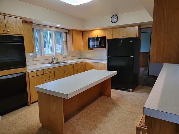 Check out this well-built two owner ranch style home located on a corner lot! Close to the hospital/clinic, park, and downtown. Main floor features an eat-in kitchen with ample cupboard and counter space, middle island for seating, and built-in appliances. Good sized living room with sliding glass doors out to the back patio area. 4 bedrooms all with good closet space, full bathroom, and a 3/4 bathroom all on the main floor! Laundry hook ups in the kitchen area if you desire main floor laundry or you can have the option of laundry on the lower level. Lower level features a large family/rec area with a pool table, closet, and built in cabinets, a utility room, and a large storage room. Attached 2 stall garage. This property has established landscaping and a blacktop driveway. Call today to set up your private viewing to see if this is the perfect property for you!